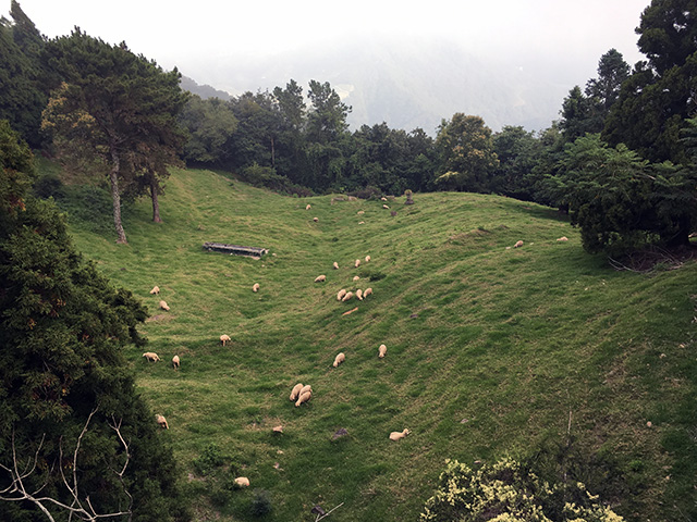 步道底下很多綿羊在閒晃