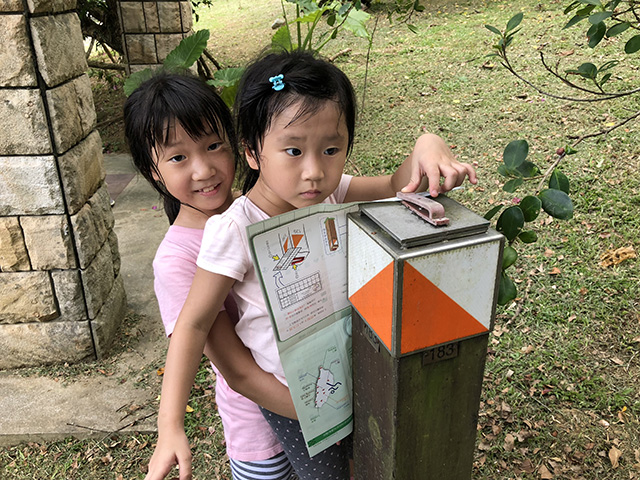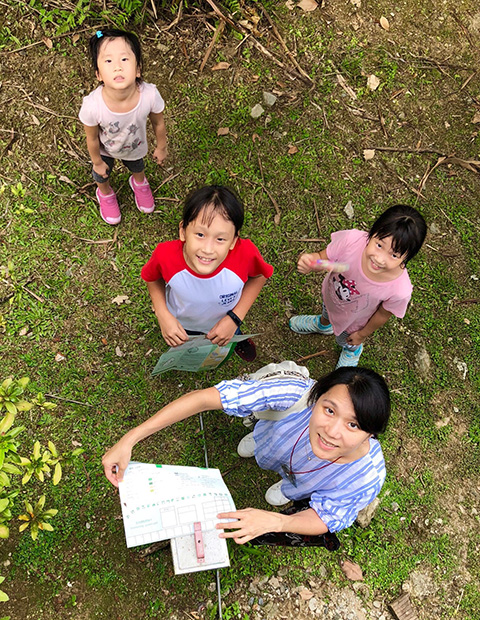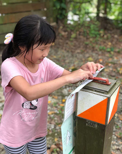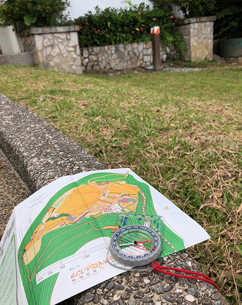 用一張只有標示地形的地圖和指南針. 找出散落在園區內的10個指定關卡