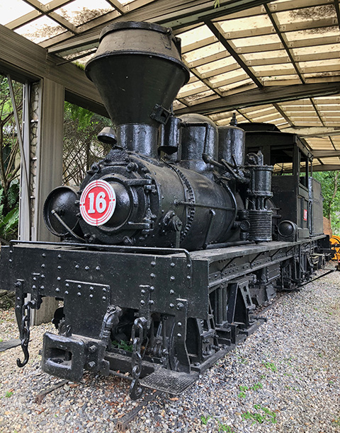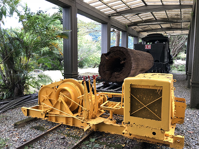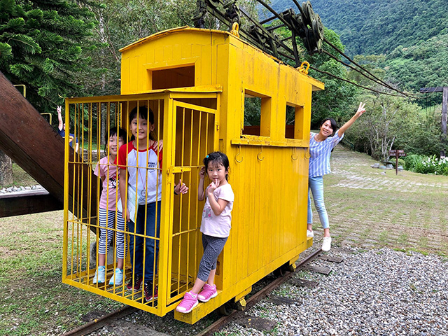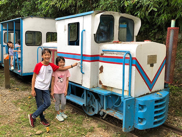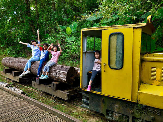 應該是以前運木頭的火車頭? 一邊玩還可以一邊探險園區