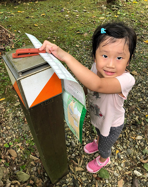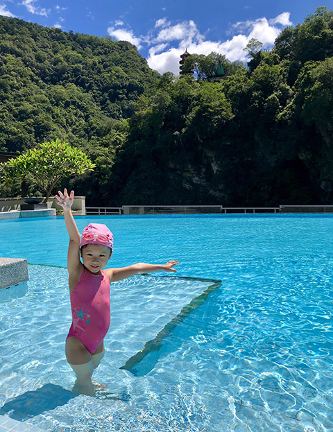 吃飽喝足就來搭車進太魯閣晶英囉. 小妹妹真的很會抓timing