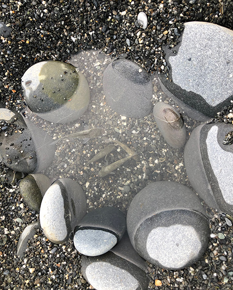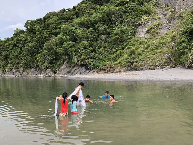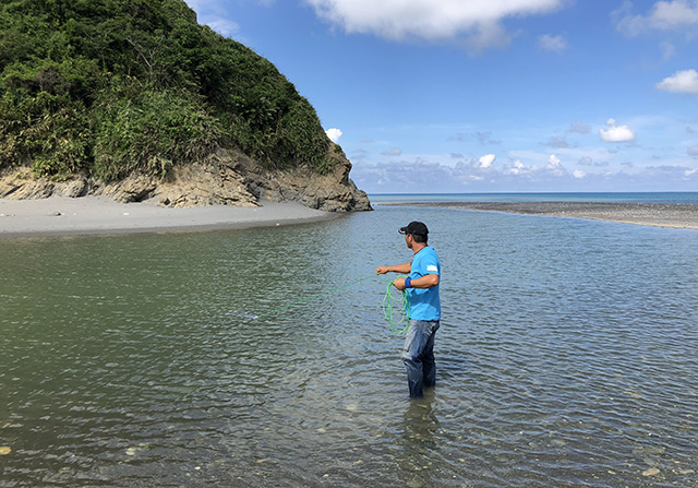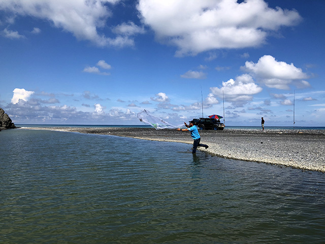 剛好是條小溪的出海口. 示範一下怎麼捕魚
