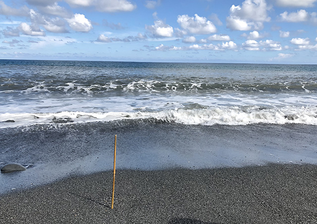 躲在旁邊稍等一下. 等浪退了就可以把沙撥開看看有沒有收穫