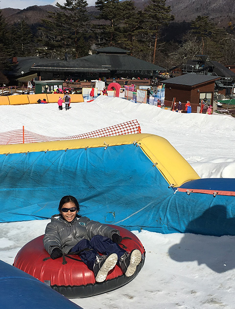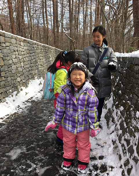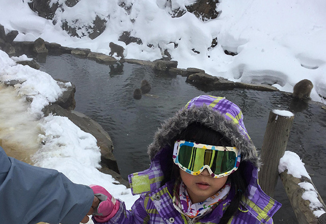 本日行程: 爸爸滑雪. 媽媽帶一組小鬼玩雪. 姑姑姑丈帶另一組小鬼看猴子洗溫泉 (嗯?)