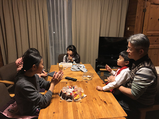 慶祝姑丈生日. 姑姑買了超級貴的水果切片蛋糕