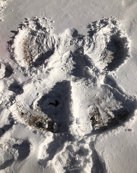 好險小鬼們很會自己找樂子. 在外頭玩雪玩得很high. 雪天使製作中