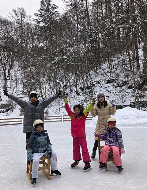 不滑雪改溜冰. 被光禿禿樹林圍繞的溜冰場. 一整個冬季戀人的fu