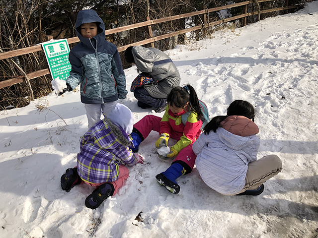 還沒真正冷到. 地上零星幾塊小積雪照樣玩得很起勁