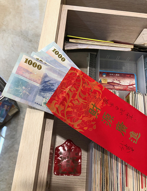 整理家當也是有甜頭的. 居然翻到一包忘記存進銀行的紅包 (藏)