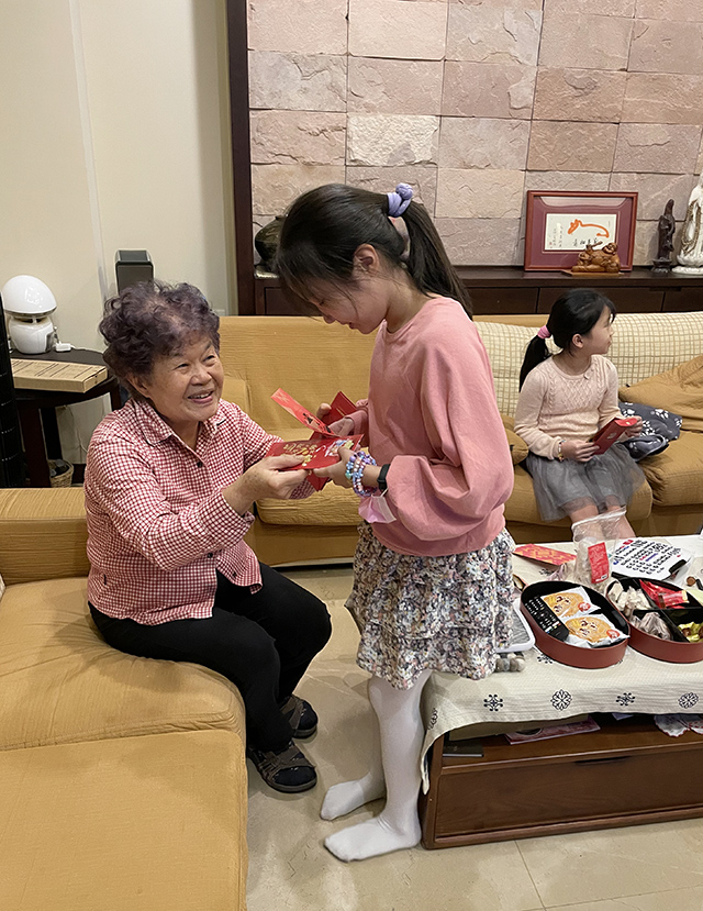 小妹妹長大了. 終於願意配合演出 (講吉祥話領紅包) 啦