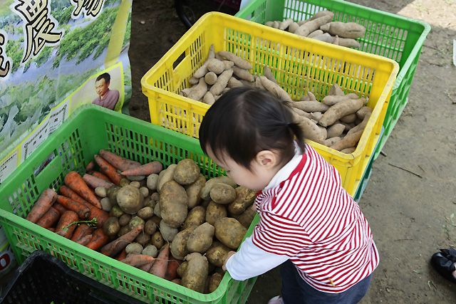籃子裡的紅蘿蔔. 馬鈴薯. 地瓜… 妹妹全部都認得喔