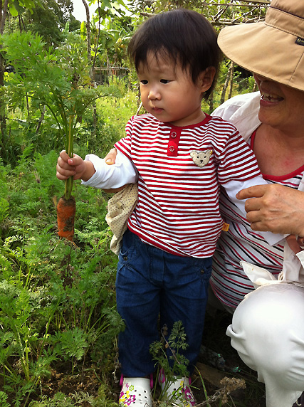 跟阿媽一起下田拔蘿蔔