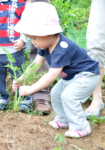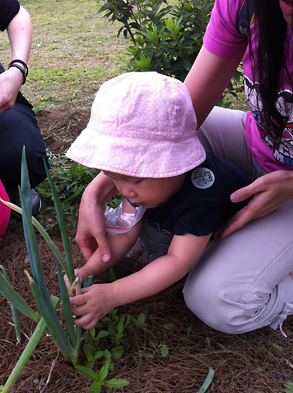 其他小朋友還在怕怕的時候. 妹妹一個箭步衝上去. 很不客氣的就拔了起來