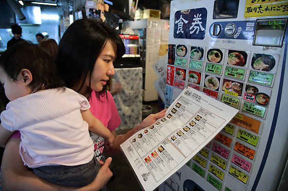 老闆娘一看到媽媽呆在餐卷販賣機前. 很主動的就拿出中文對照表給我門