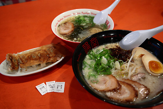 左:沖繩麵. 右: 沖繩特產黑豬腳麵