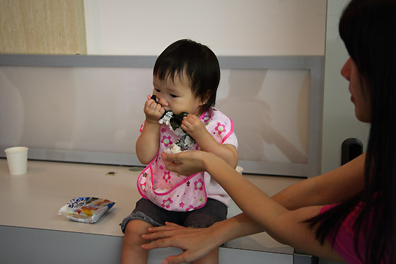 妹妹嗑掉一整顆後. 因為沒得吃大鬧機場. 趴在地上大哭 (爸爸手忙腳亂來不及照相存證)