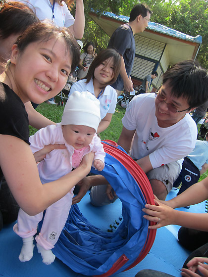 既然是校外教學. 當然要來點小活動. 第一關: “爸爸”換尿布 (哼哼! 也太瞧不起人了吧)