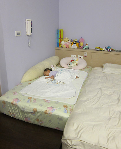 最近早上起床常常見識到妹妹的驚人移動力: 這是180度