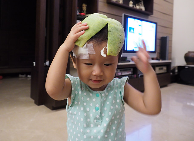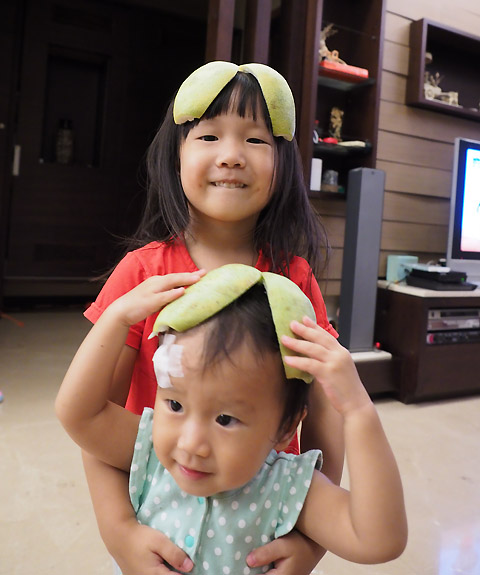 繼續轉轉轉 (爸爸很無聊的在旁邊撥柚子)
