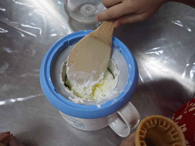 自己辛苦轉的冰淇淋最好吃了! 大滿足~