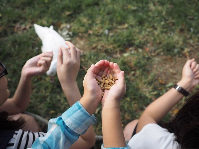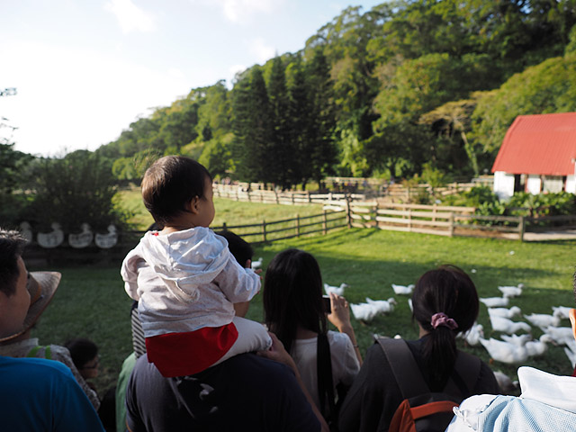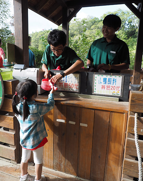 不過還是不敢用手餵羊. 枉費爸爸示範了很久…