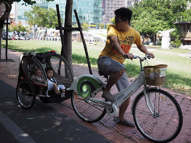 媽媽不知道去哪裡找到這個親子版腳踏車出租