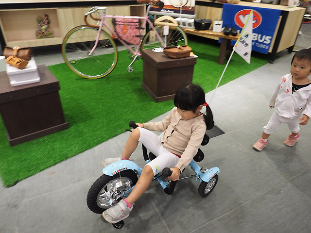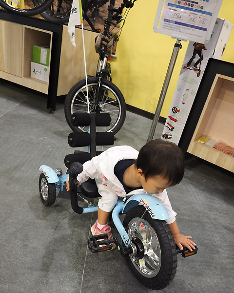 還車的時候. 老闆很好心的問妍妍要不要試騎小朋友專用腳踏車