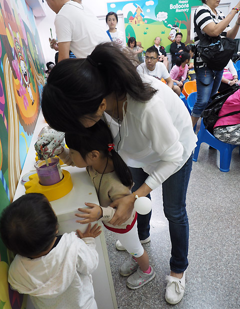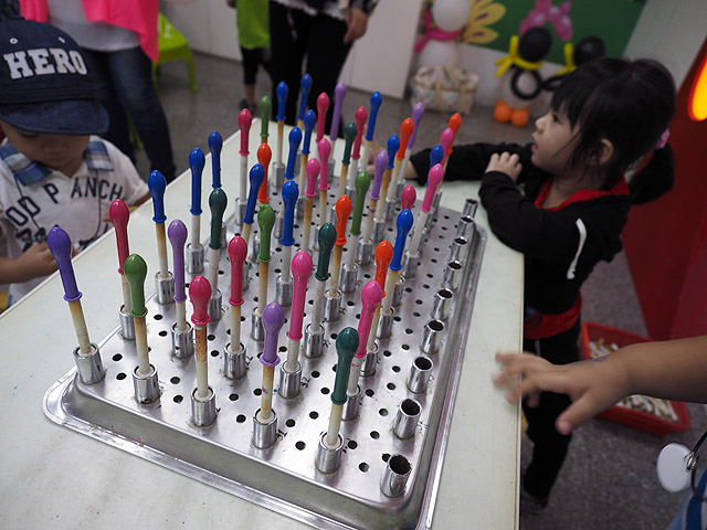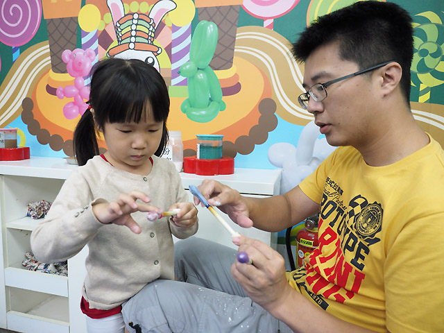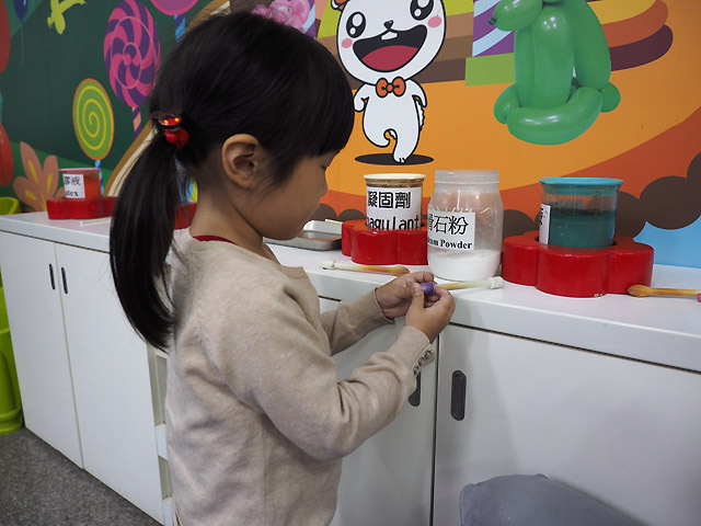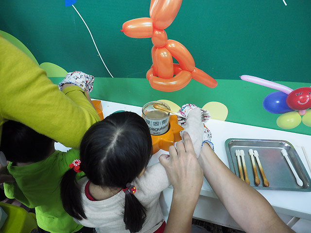 汽球DIY體驗. 先把加熱過的氣球模型棒放進凝固劑裡