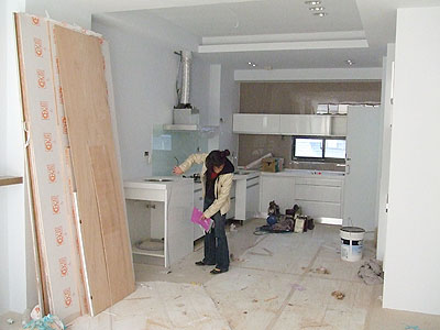 廚房. 事必躬親的老大. 每一個角落都要這樣量一下才睡得著…
