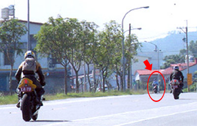 2. 承上. 比對4張照片. 如果速度越快. 距離前一台車應該越近. 可是照片裡看起來卻最遠. 這是什麼道理?