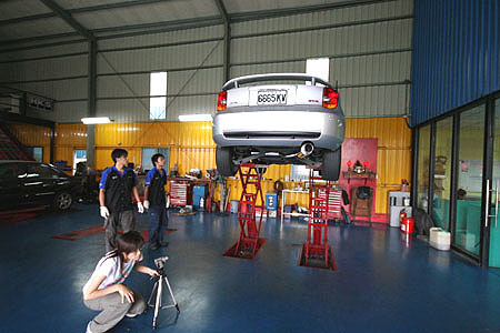 打完收工! 車廠也派出攝影師做紀錄 (技師: x的. 這什麼鳥車. 有夠難搞!)
