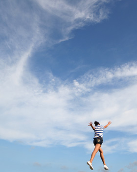 “好漂亮的藍天! 從這個角度照出去線條很棒!”