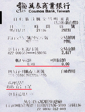 Misc. 雜七雜八 破產! 2007-01-29 / 有一天. 繳卡費的時候赫然退出這玩意兒… 原來…在油石國中學費不斷上漲+永無止境的改裝+(小學國中高中大學研究所同事路人甲)不停結婚+(小學國中高中大學研究所同事路人乙)不停生小鬼+手賤控制不了的網路莫名其妙購物+族繁不及備載不知不覺的吃喝玩樂 的多重打壓下: …僅以此文悼念這位默默為台灣經濟打拼的勇士.