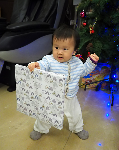 這是我的~ (單手… 這個禮物很重的啊)