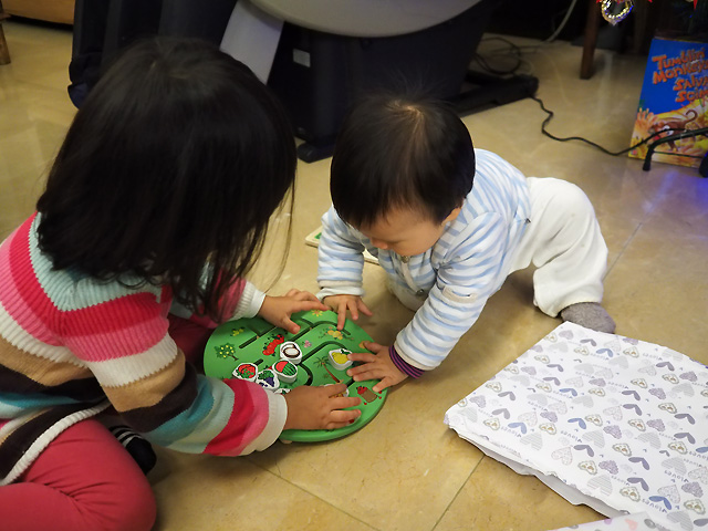 另一個是幼稚園老師送的迷宮遊戲. 看來小妹妹也很有興趣