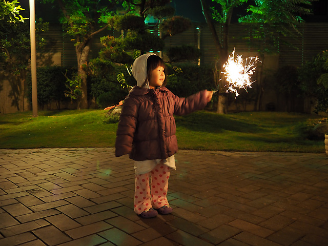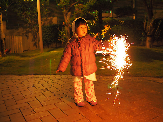 清雜物的時候突然冒出一包很久以前買的仙女棒. 就給妍妍來個煙火初體驗吧