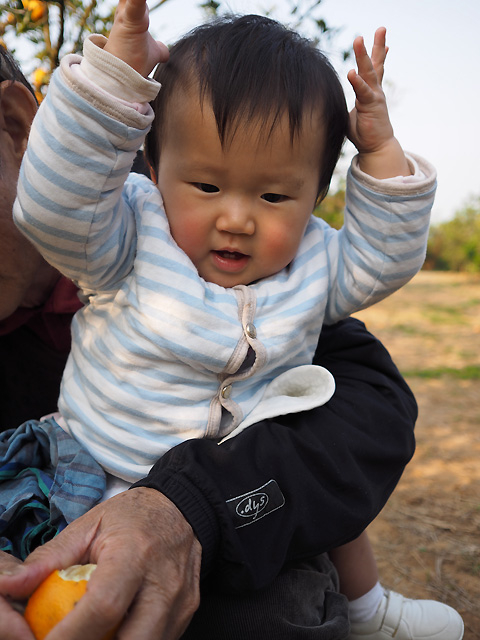 因為等在旁邊就有阿公現剝的柳丁可以吃