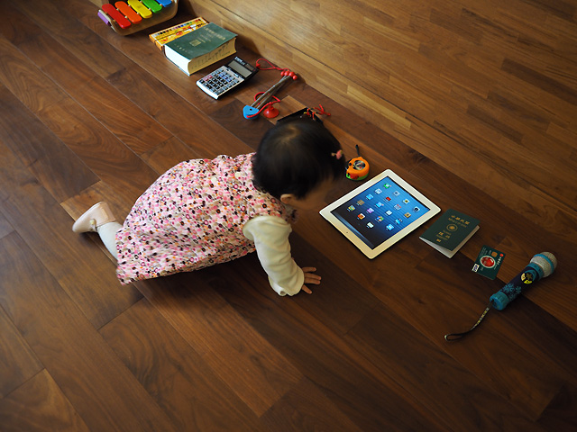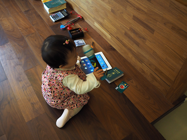還不會玩積木的小妹妹只能在旁邊湊熱鬧