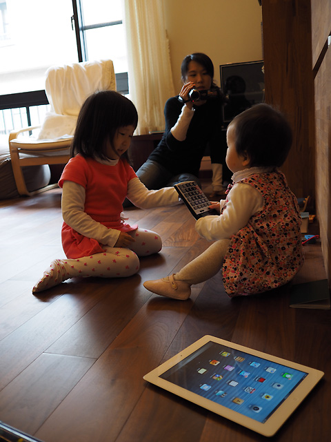 看姊姊打得很開心