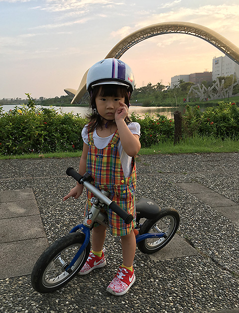 小妹妹太小還沒辦法自己坐後座. 只能過過乾癮 (悲傷)