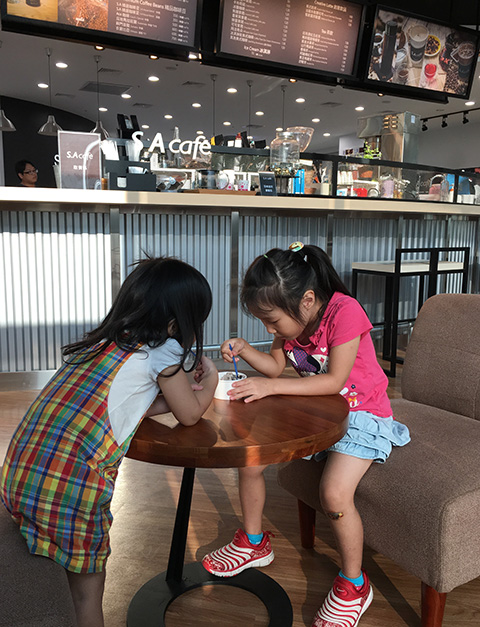 下午媽媽放風逛街去. 只好靠旁邊咖啡店(的冰淇淋)打發時間了