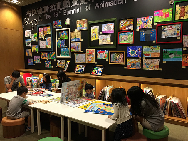 熱到受不了. 躲進樓下的兒童閱讀區吹冷氣