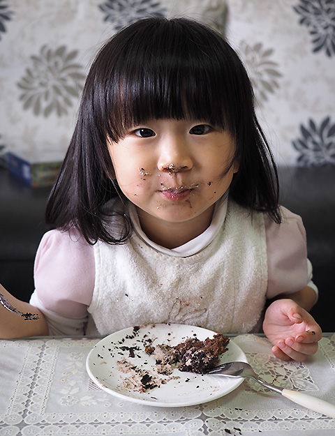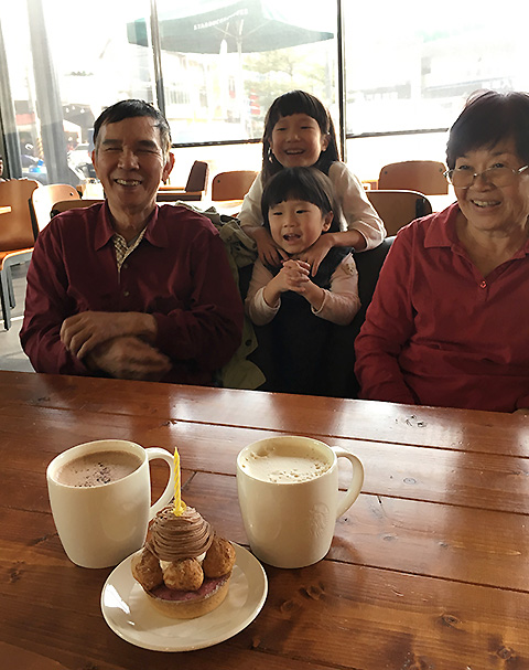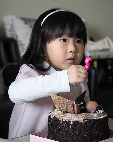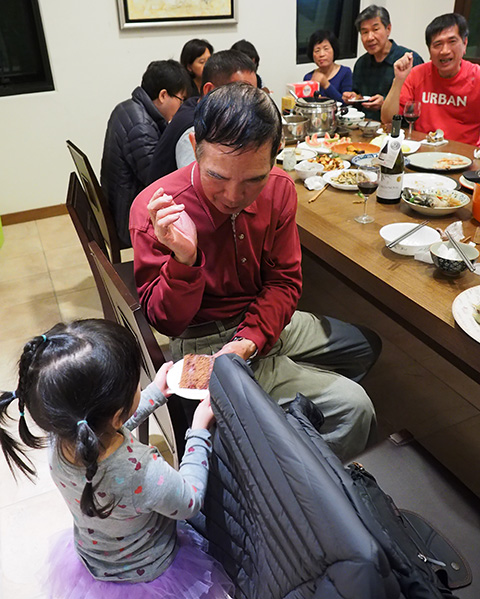 生日快樂歌唱得不是很專心. 阿公的生日小蛋糕倒是秒清空…