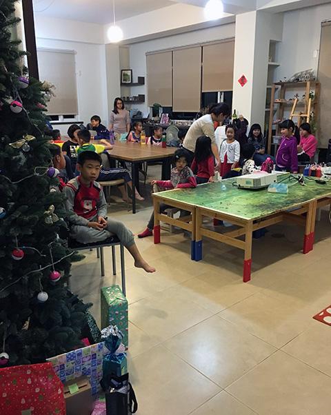 兩個小鬼的畫畫教室也有耶誕節活動. 放爸爸媽媽一個晚上的假. 真是太甘心了