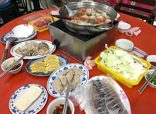 外公力推的茄萣魚翅火鍋. 滿滿的人從店內排到棚子外