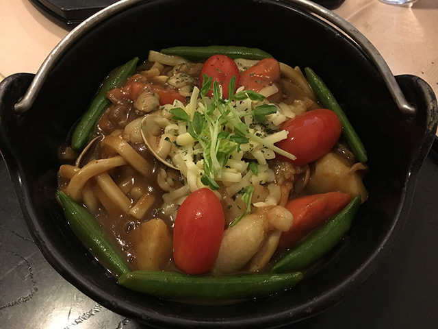 海鮮咖哩麵. 看起來不怎麼樣. 小鬼倒是很捧場. 清空~
